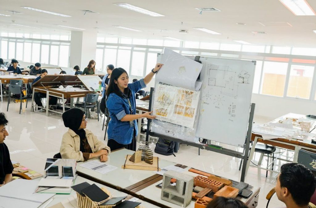- Designated desks / meja gambar individual untuk setiap mahasiswa